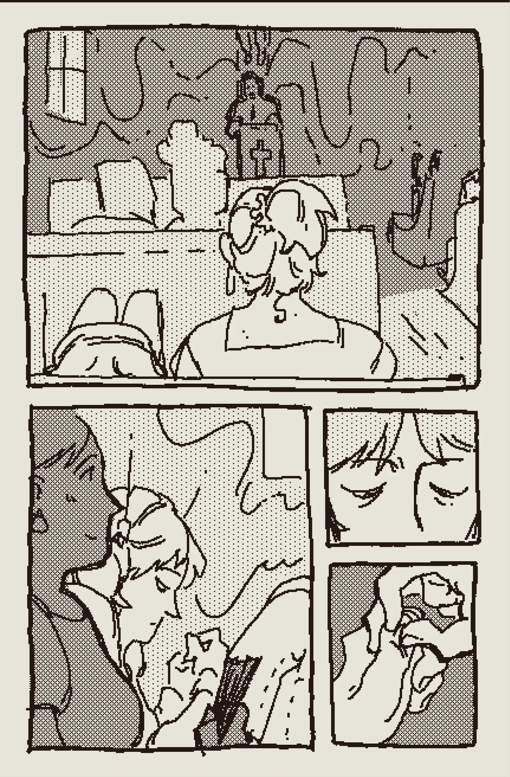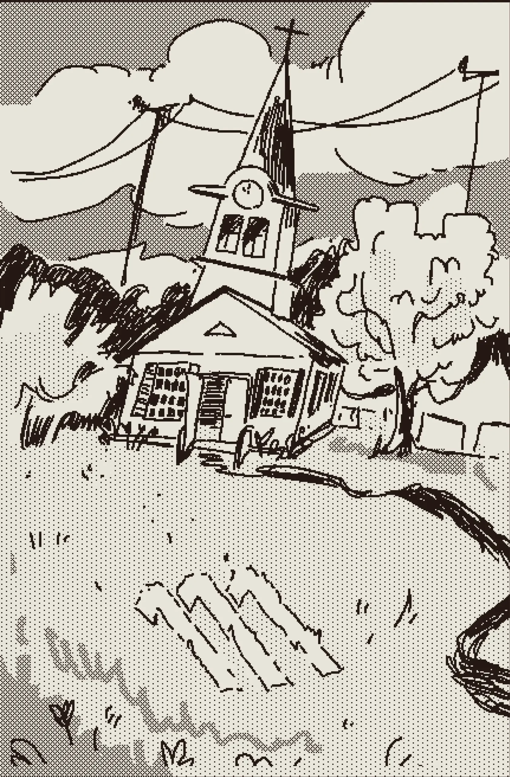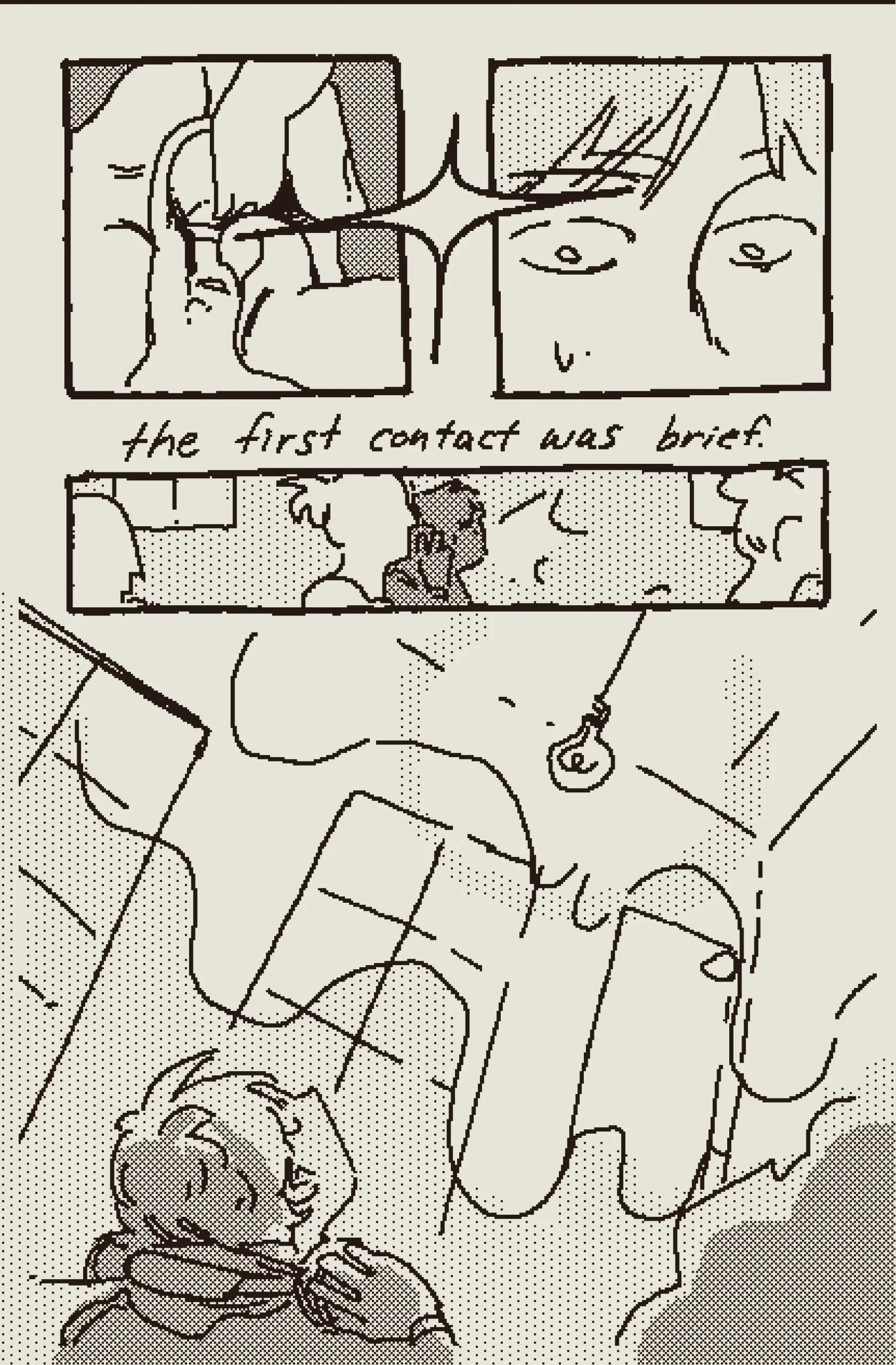 a girl begins to worship the radio tower by her house after she begins to hear the word of god through electric currents. a loose joan of arc sort of thing. originally published in the 2022 shortbox comics fair.